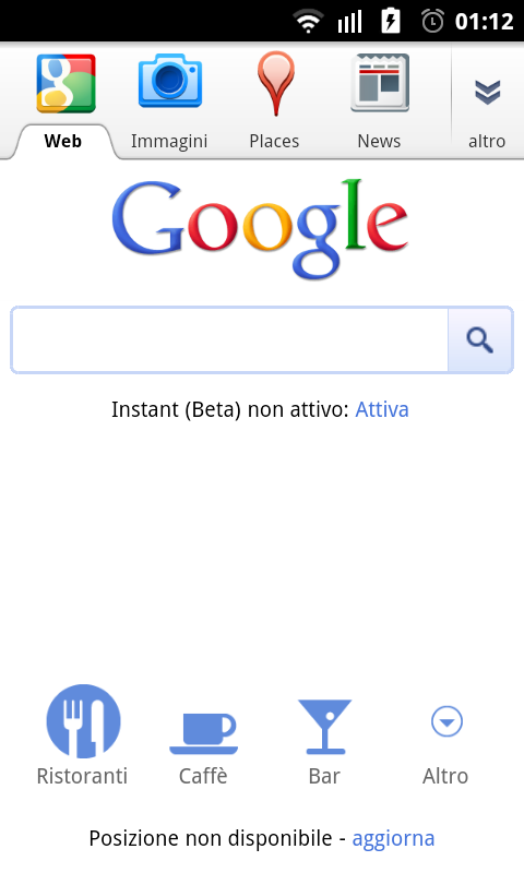 i link dei motori di ricerca verticale (Web, Immagini, News, Places) sono stati sostituiti da icone.