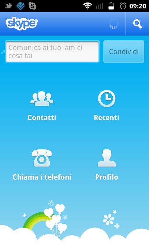 Il nuovo menu principale permette di navigare semplicemente tra i contatti, effettuare una chiamata, visualizzare gli eventi recenti, accedere e modificare il proprio profilo e controllare il saldo del credito.